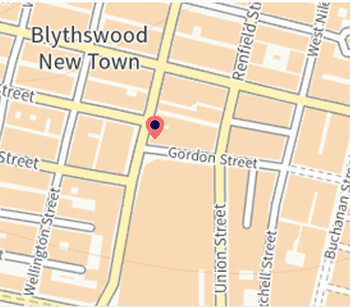 We can be found at the corner of Hope Street and Gordon Street in Standard Buildings a short distance from Central Station.